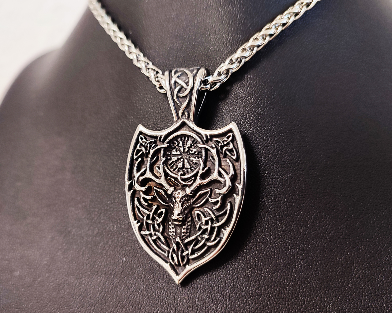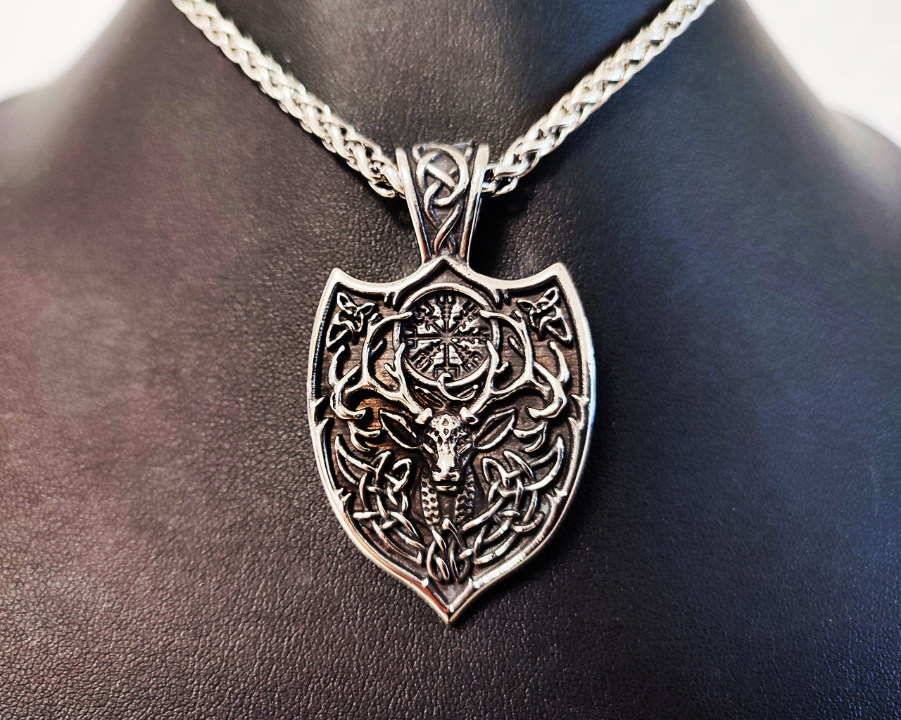 Dieser einzigartige Anhänger zeigt das Abbild des Hirschen Eikthyrnir, der zwischen dem Geweih