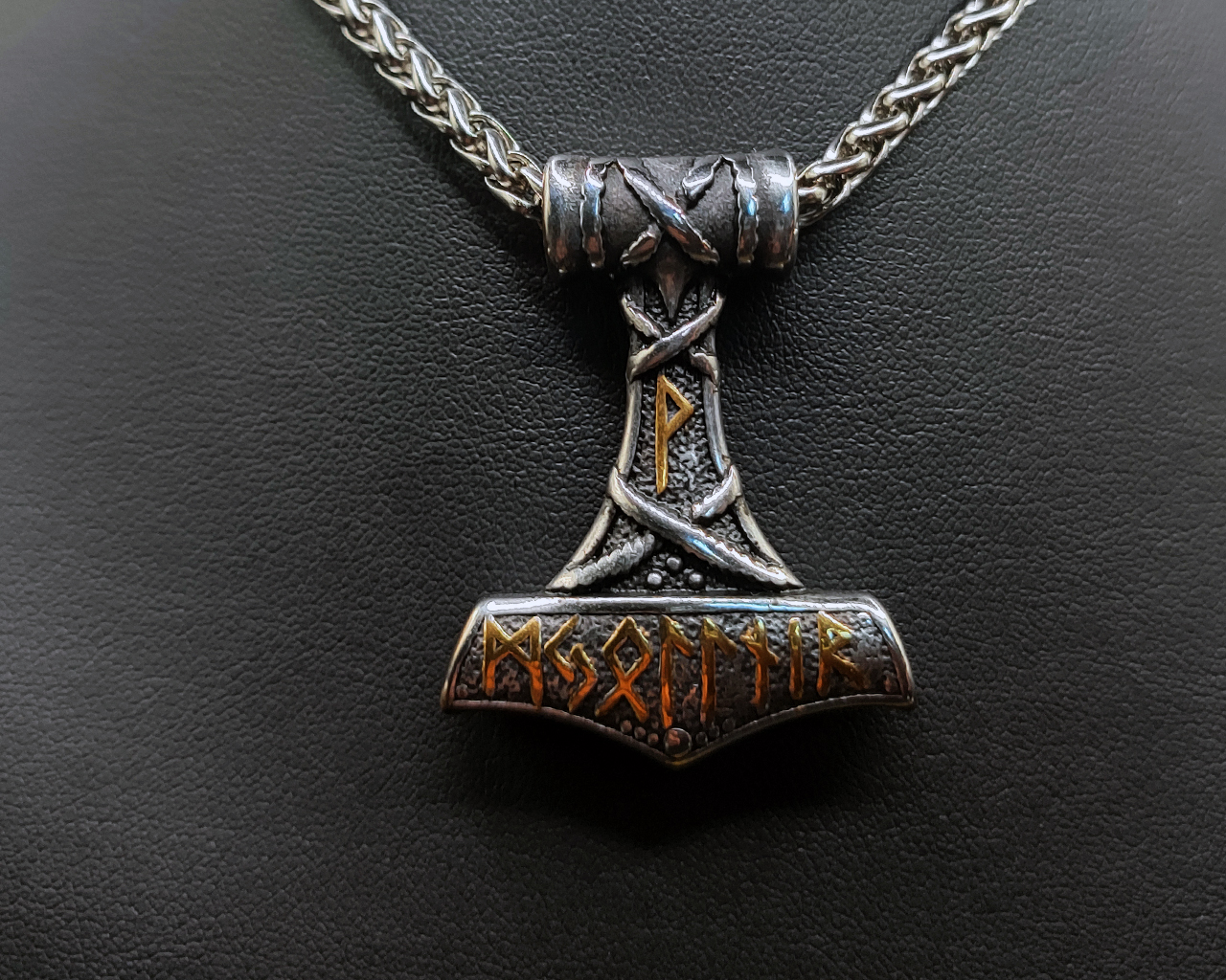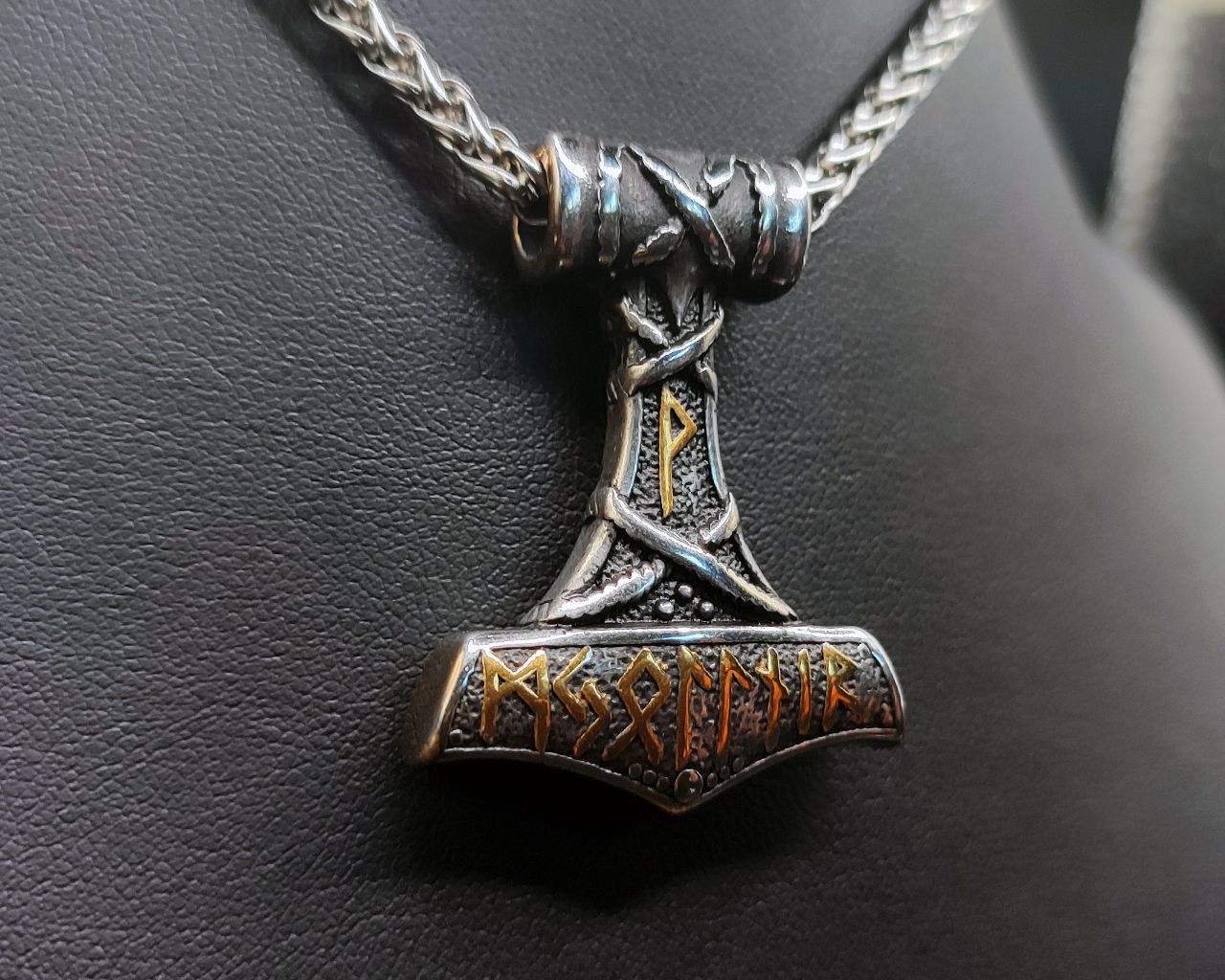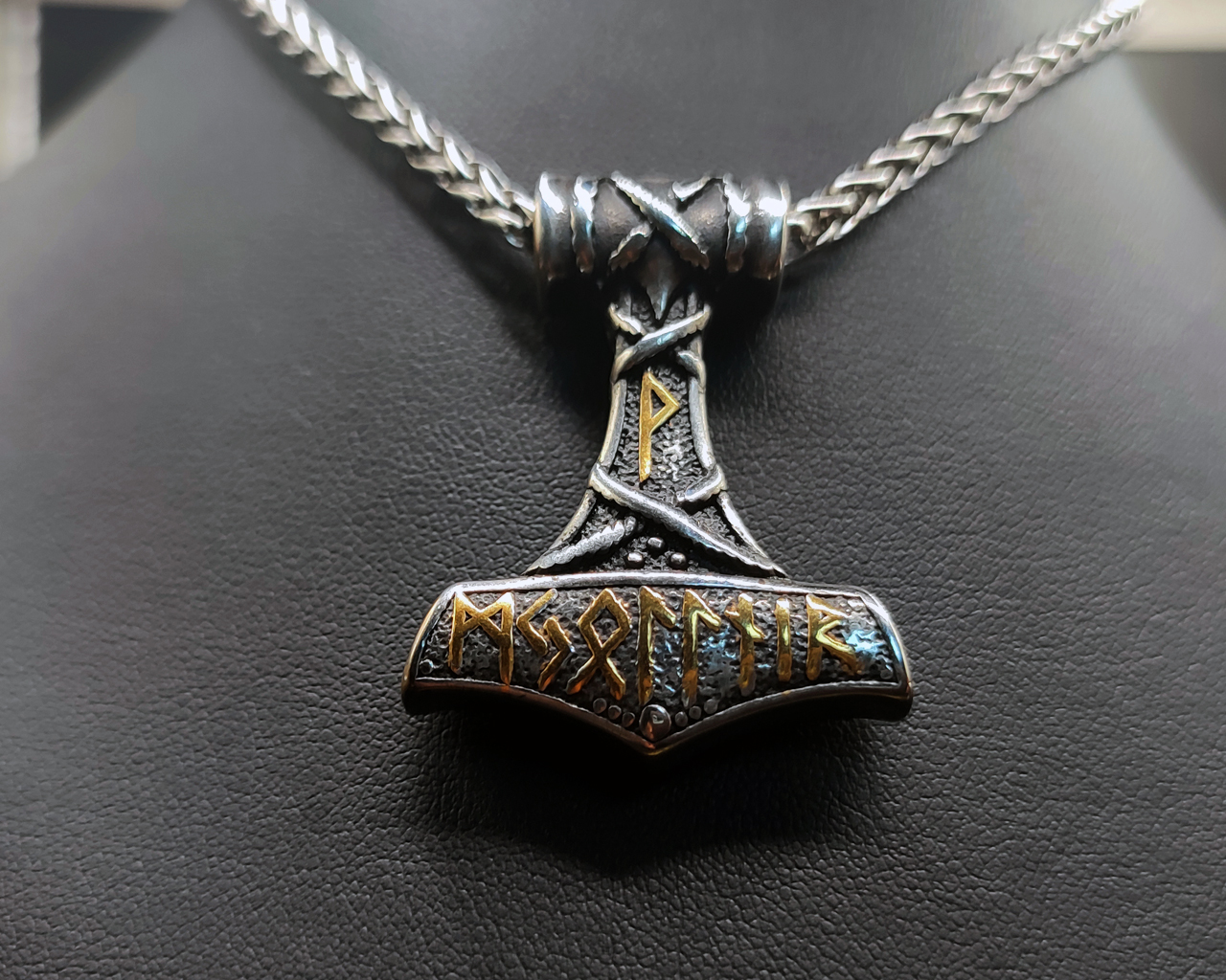 Ein ausdrucksstarkes Schmuckstück für Liebhaber nordischer Mythologie, Symbolkraft und hochwertigem Design – trage die Macht Thors in modernem Stil.