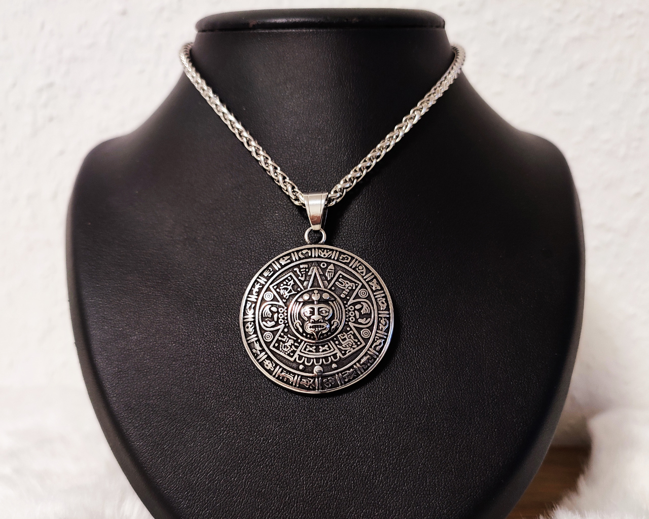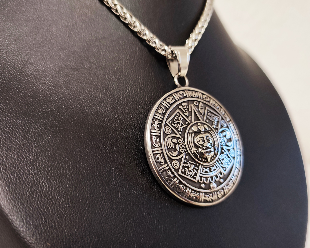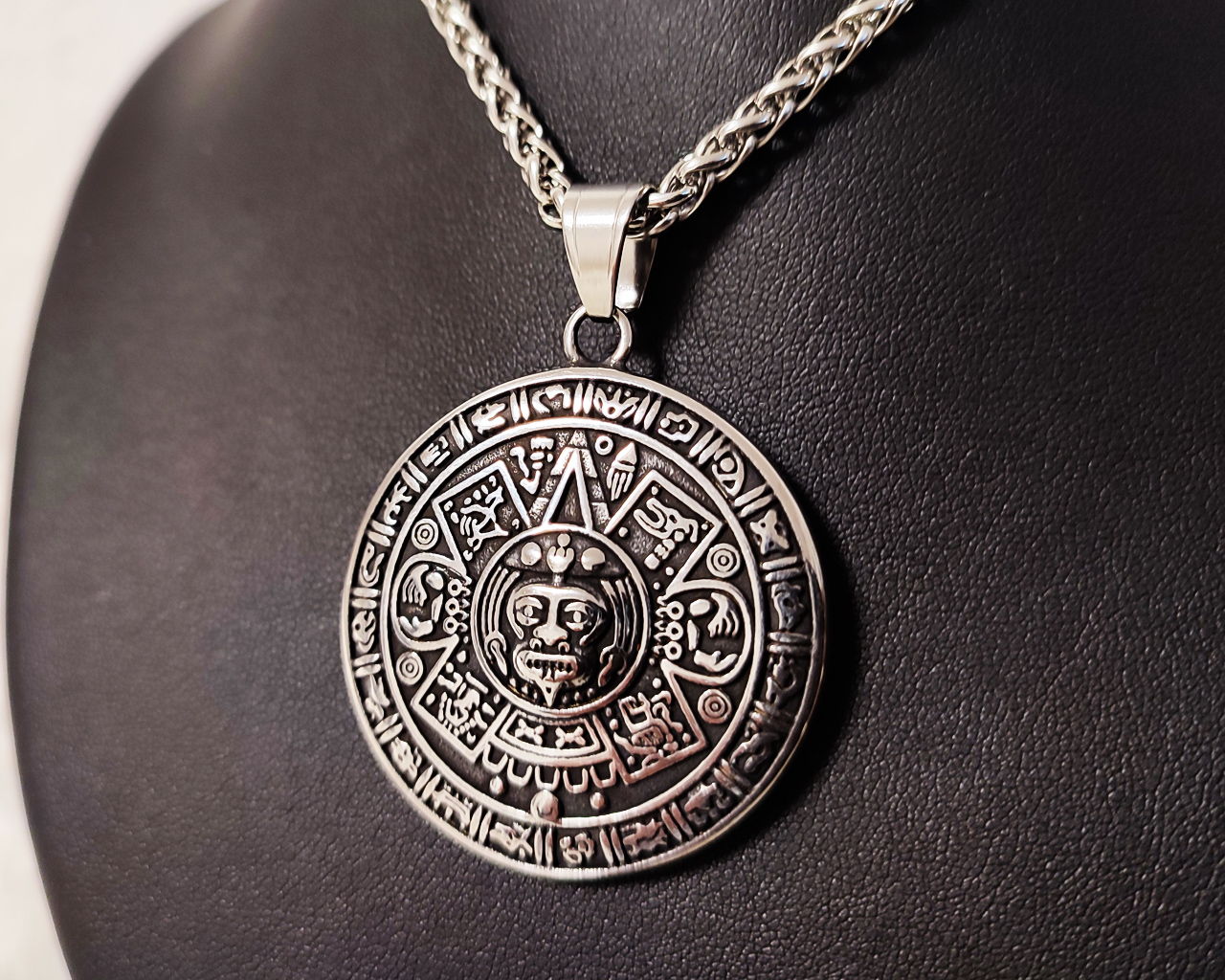 Aztec Sun Pendant Stainless Steel – Mayan Calendar Necklace