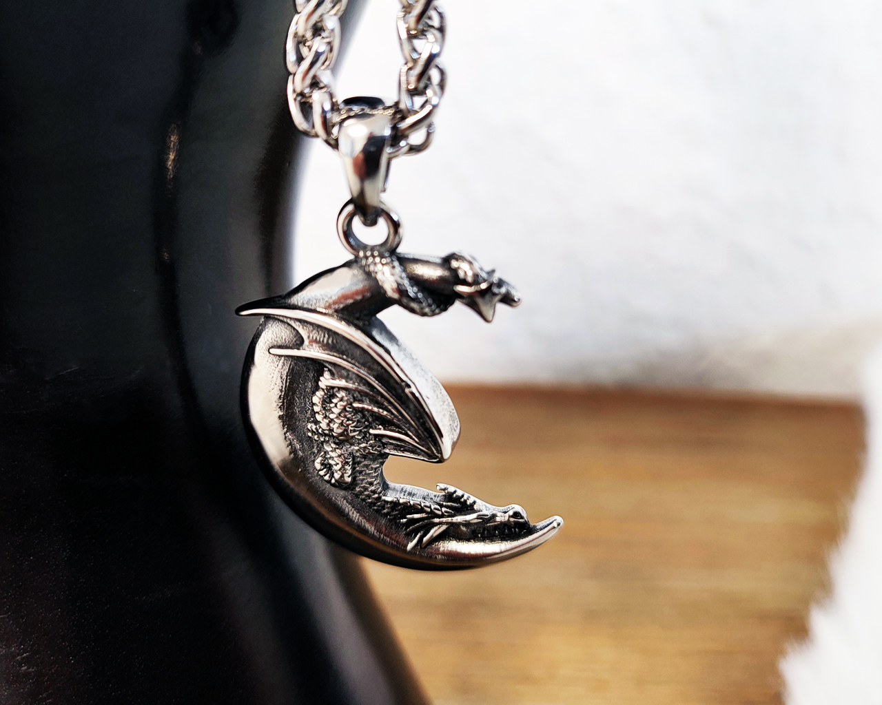 Are you ready for a piece of jewelry that looks like you stole it straight from the treasure chamber of an ancient dragon lord?Then grab our stainless steel dragon pendant, casually nestled around a crescent moon—mystical, intricately detailed, and simply damn stylish!